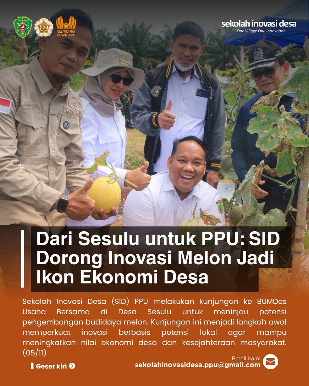 Kesuksesan panen raya melon Sesulu menjadi bukti bahwa dengan semangat kebersamaan, keberanian berinovasi, serta pemberdayaan SDM lokal, desa mampu membangun fondasi ekonomi yang kokoh dan berkelanjutan.